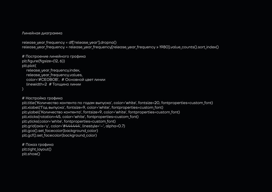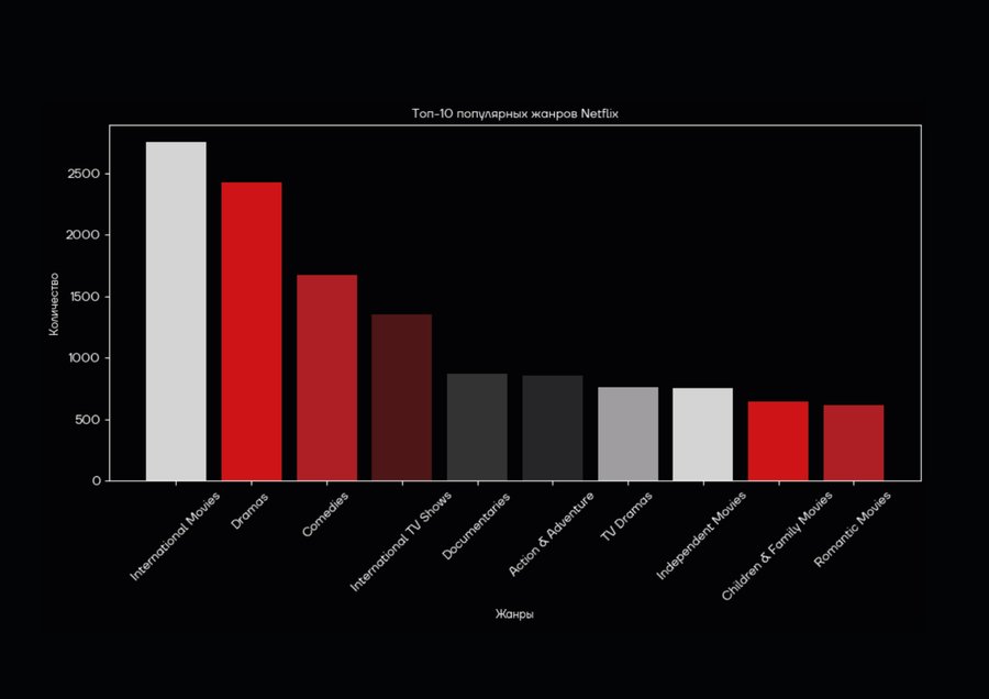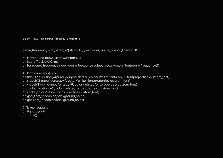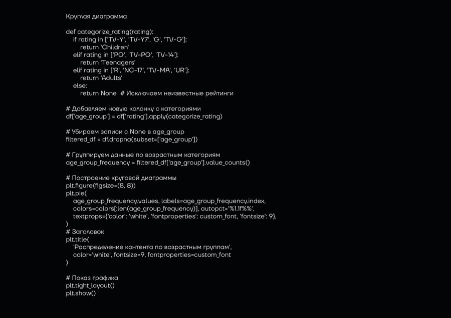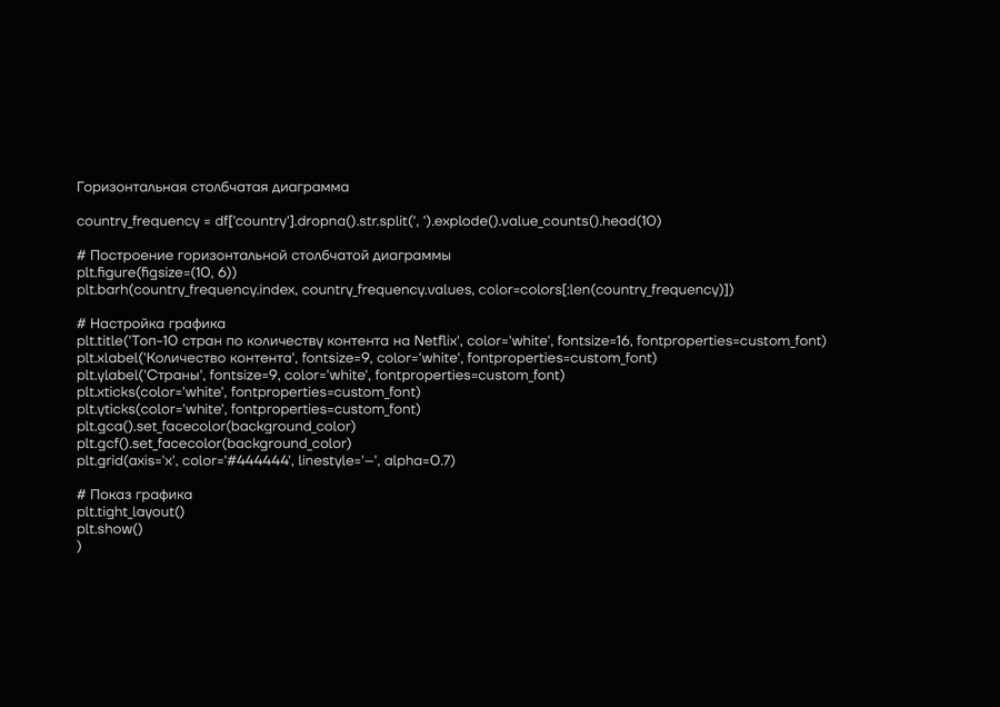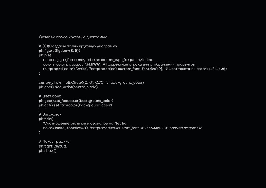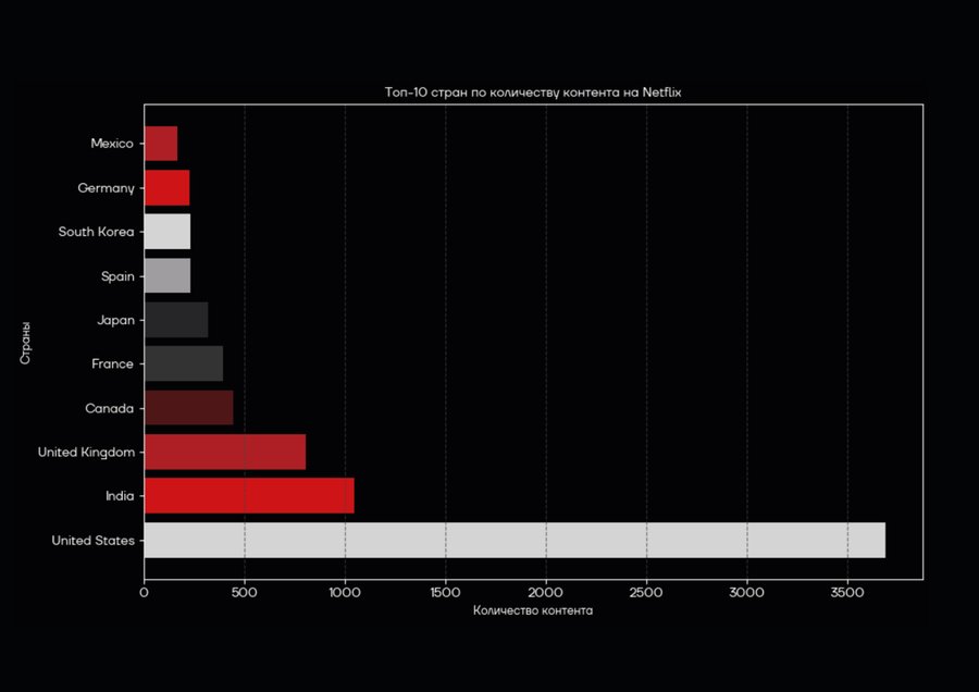 Netflix — один из крупнейших потоковых сервисов в мире, и его контент имеет огромную популярность. Анализ этих данных позволяет понять, как Netflix распределяет контент по возрастным группам, жанрам, странам и типам. Это даёт представление о стратегиях компании и предпочтениях её пользователей.