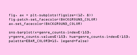 На линейном графике показаны 15 самых популярных жанров, основанных на частотности их упоминаний в датасете. Лидируют такие жанры, как экшн, комедия, фэнтези и приключения. Это показывает, что зрителей в частности привлекают динамичные и развлекательные жанры.