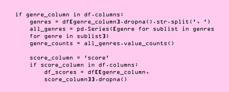 Heatmap показывает, как часто определенные жанры встречаются вместе в одном произведении. Чем ярче цвет на графике, тем чаще жанры появляются в паре. Наиболее частыми комбинациями являются экшн и приключения, что неудивительно, так как эти жанры обычно тесно связаны друг с другом.