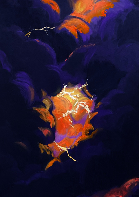 Начальная идея заключалась в том, чтобы показать разницу между тем, как огромна любая стихия и какие мы — люди, маленькие и ничтожные рядом с ней. Мне хотелось, чтобы стоя рядом с моими картинами зритель не просто увидел стихию, а почувствовал себя маленькой песчинкой, ощутил свою беспомощность и понял, что все наши дела и проблемы — ничто в контексте огромного мира.
