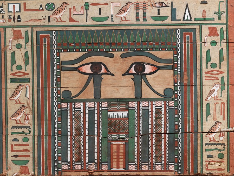 При этом же, можно было увидеть изображения символов богов: глаз (бог Осирис), трон (богиня Исида) и голова шакала (бог Анубис).