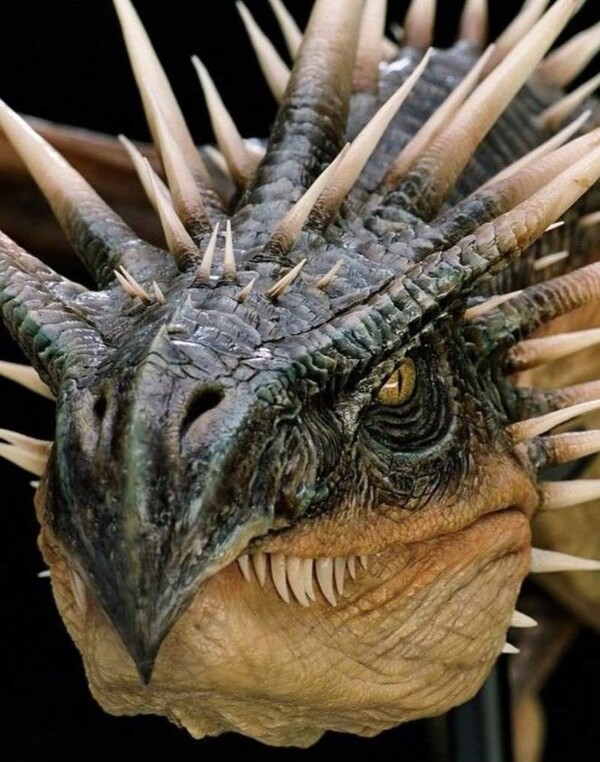 Верхнее правое — кадр из фильма, остальное — аниматроник головы дракона