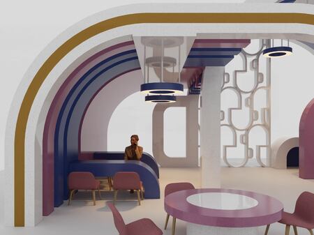 «Pattern» — это проект, выставочного стенда кафе, переосмысление графического дизайна в дизайн среды, составление кафе из символов самого названия.
