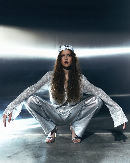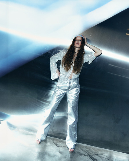Фотосесия переосмысливает эстетику электро-диско 90-х в современном ключе, избегая каких-то клише. Мы не просто копируем стиль того времени, а создаем его обновленную версию с трендовыми стилизациями. Динамичные позы моделей, пайетки, акцентный серебристый макияж и кудри в гармонии с современной локацией, аксессуарами создают атмосферу обновленного электро-диско.
