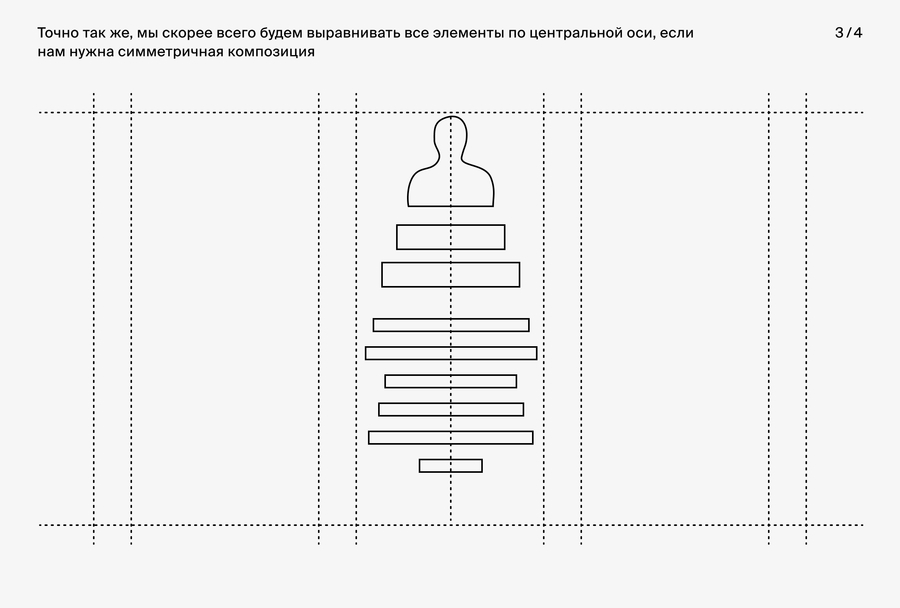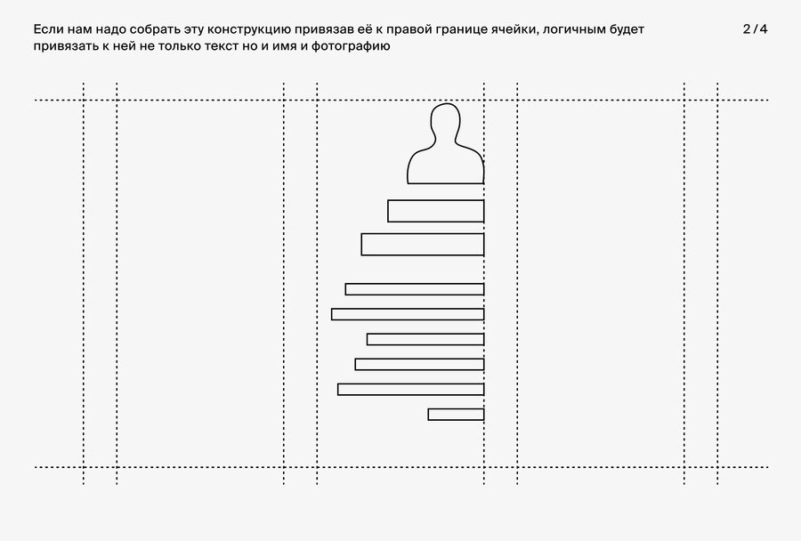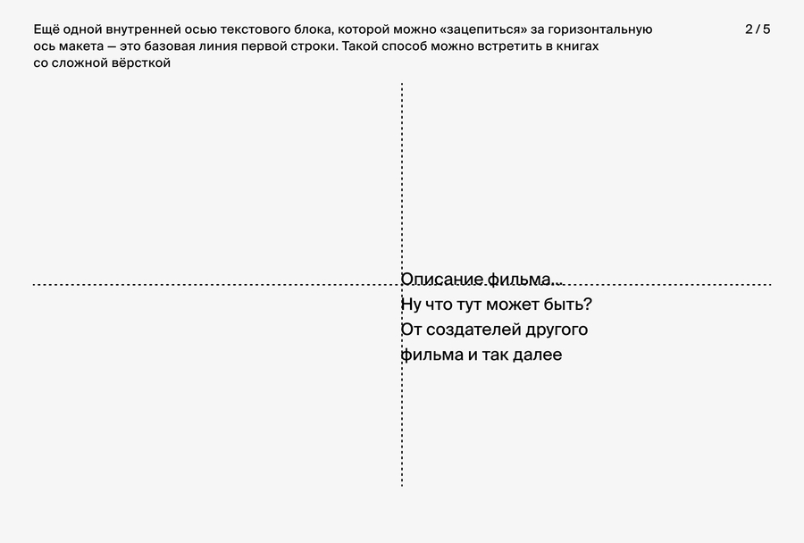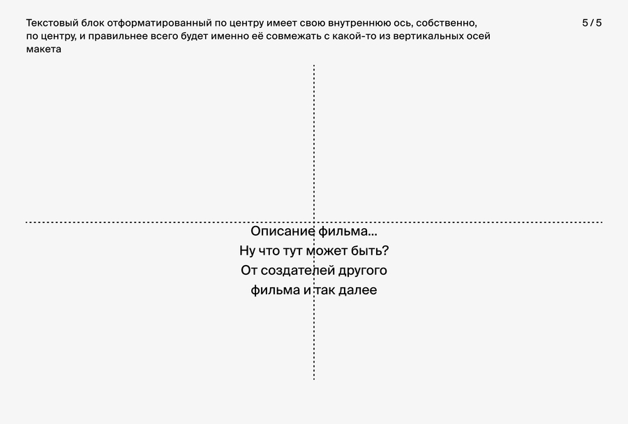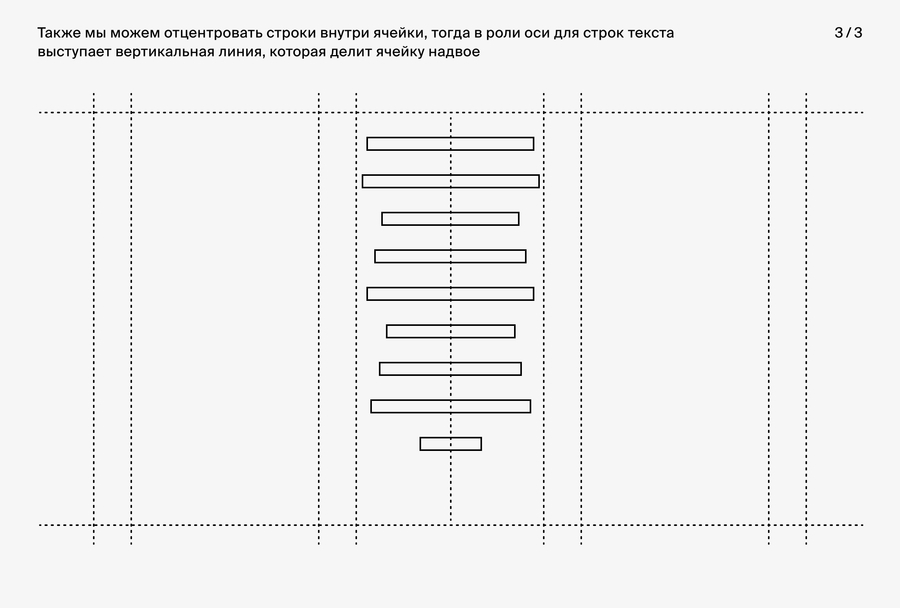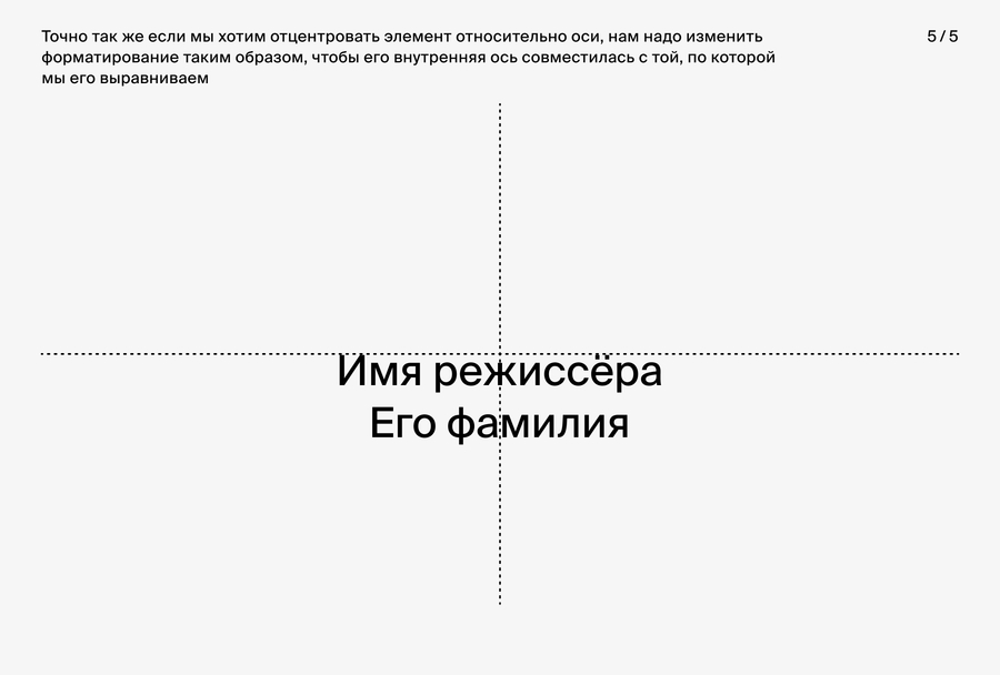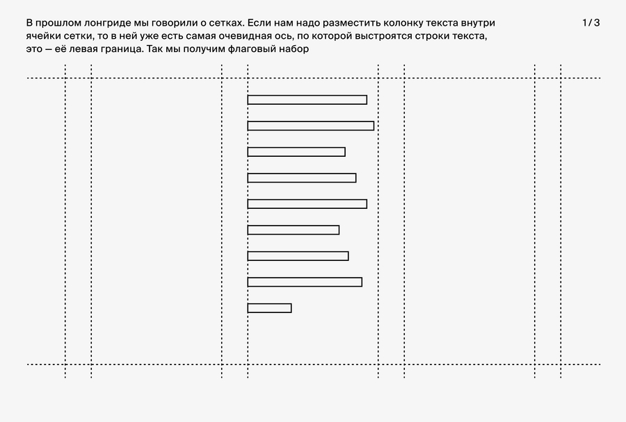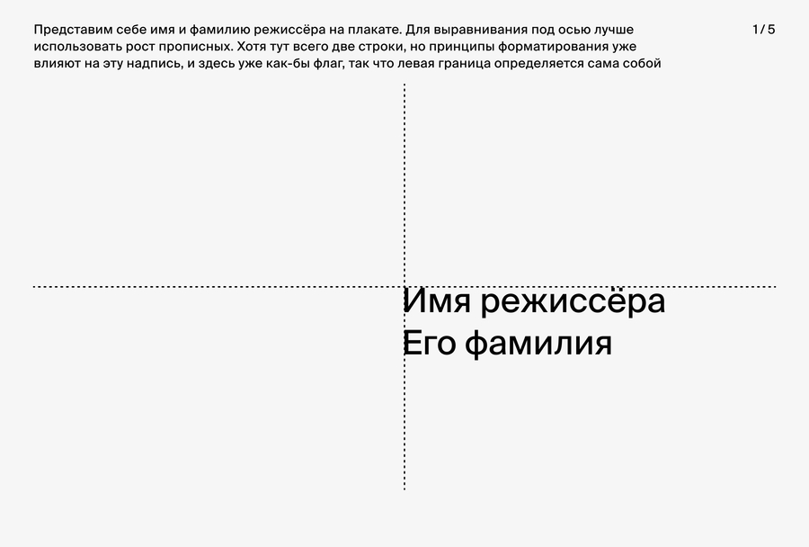 — Чтобы привязать типографический элемент к оси макета надо понимать как этот элемент логически устроен внутри себя. Например, при выравнивании по осям текстовых блоков надо учитывать способ форматирования этого блока