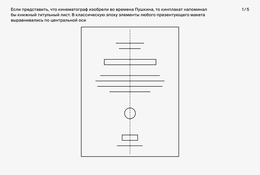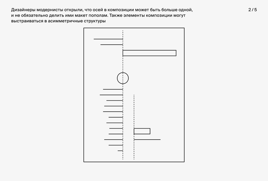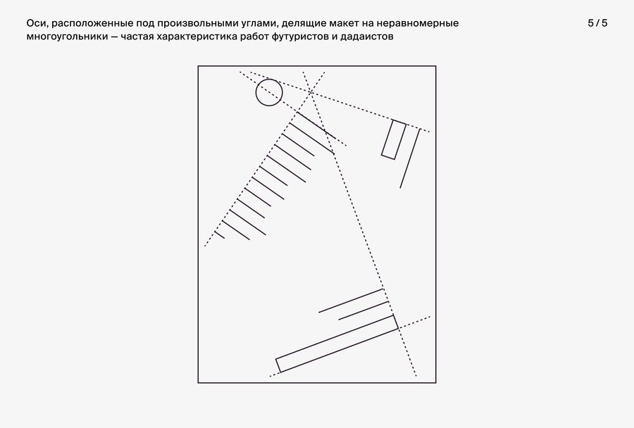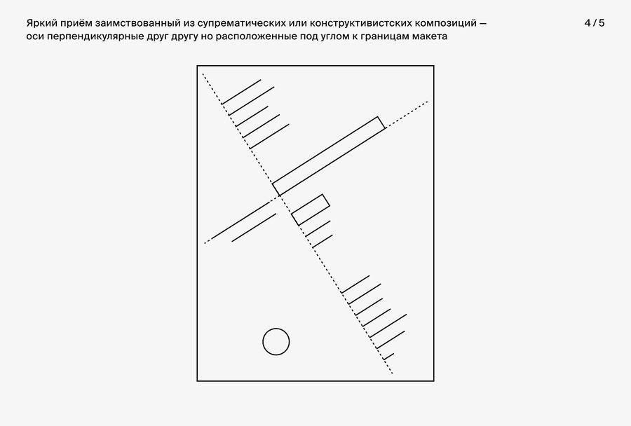 В эпоху раннего модернизма художники-абстракционисты осмысляли принципы формообразования и экспериментировали с «силовыми линиями» на своих холстах. Вслед за ними дизайнеры создавали обложки книг, плакаты или фирменные бланки, в которых мы видим максимальное разнообразие осевых композиций