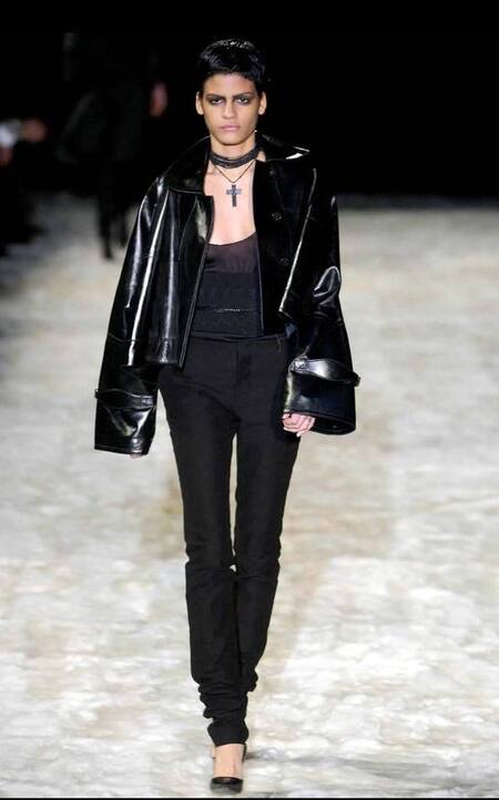 Ив Сен-Лоран впервые покорил подиум инновацией — демонстрация натуральной кожи, в далеком 1960-м году, возглавляя бренд Christian Dior. Его революционная коллекция «Beatnik», прозванная в честь бунтарской субкультуры того времени против традиций и классики моды, вызвала скандал среди элиты: смелость дизайнера встретили непониманием общественности, и как считают стало поводом для его увольнения из дома Dior.
