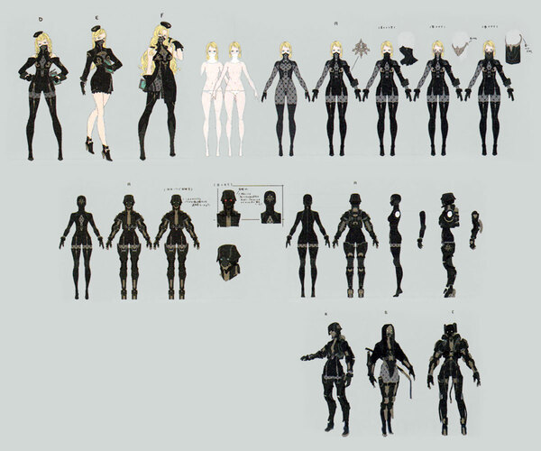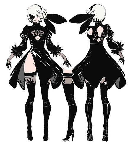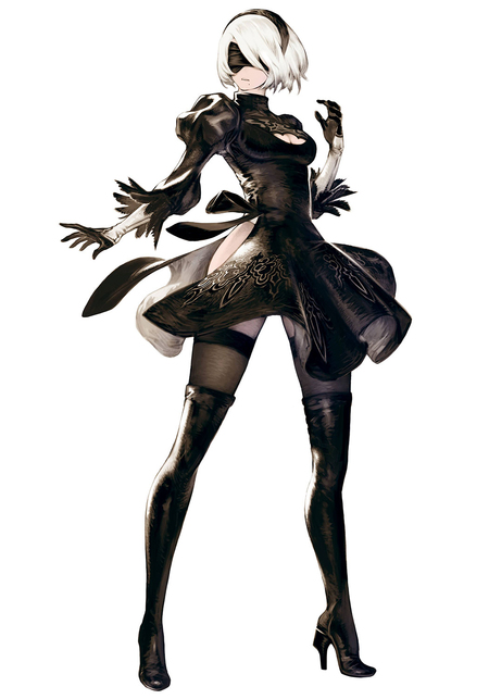 При создании 2В художнику по персонажам предоставили почти полную творческую свободу, сделав лишь два пожелания: она должна быть одета во все черное и носить на глазах повязку.