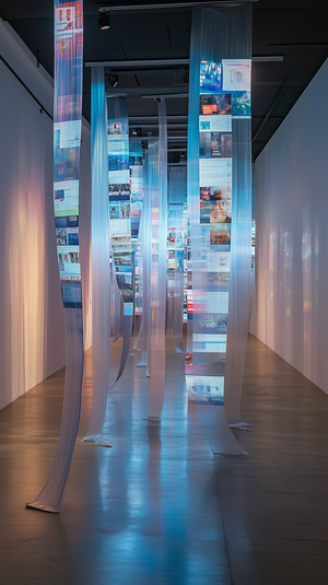 Инсталляция исследует влияние социальных сетей на нашу жизнь. В центре зала находится множество веревок, на которых проекцией отображаются ленты новостей популярных соцсетей. Постепенно лента превращается в хаотичный поток информации, где трудно отличить правду от лжи