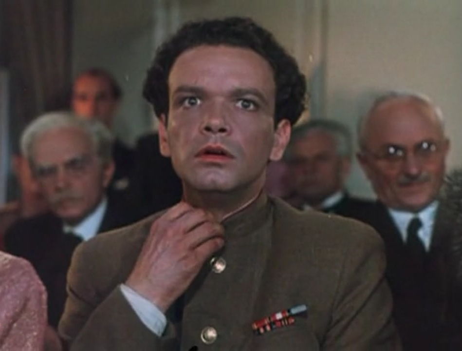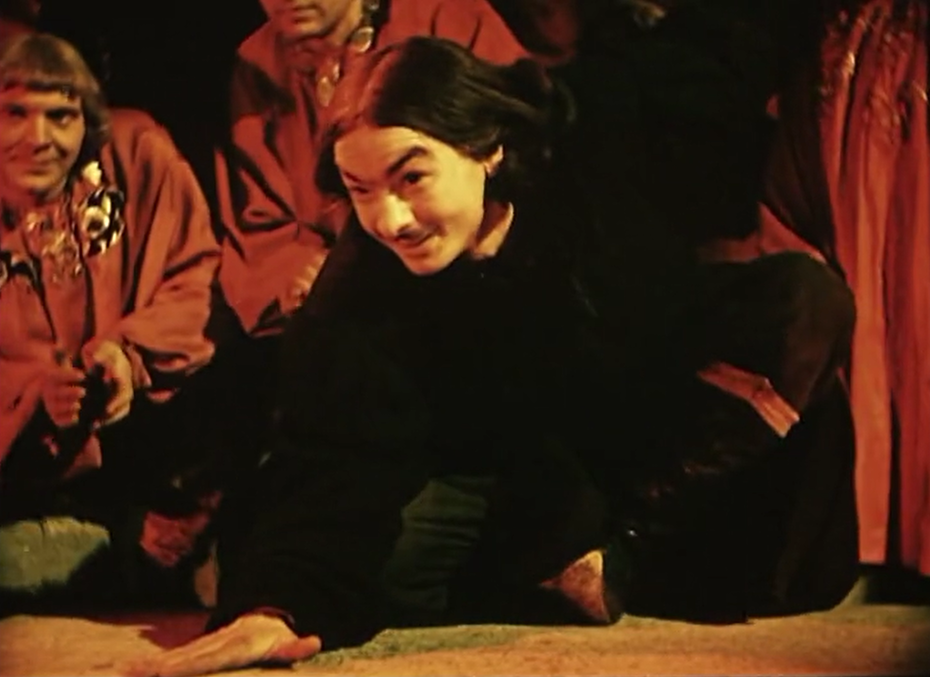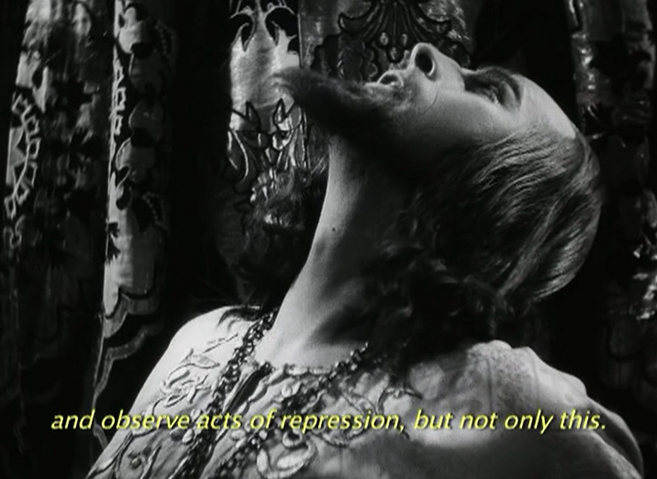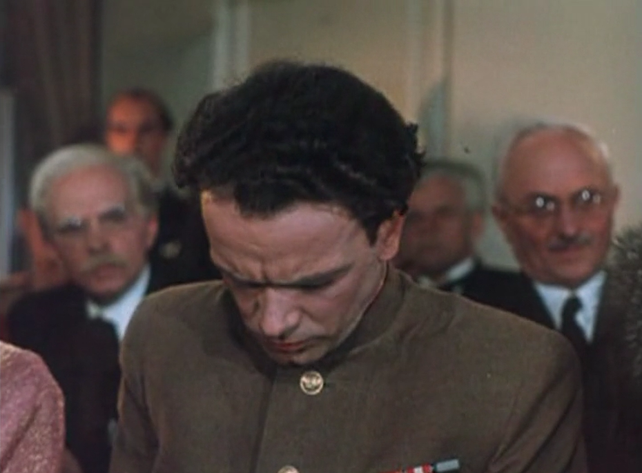 Чуть больше, чем через час все расходятся, остается только зритель — Дружников из «Сказания о земле Сибирской». Вновь мы видим его лицо, в то время как сам он увлечен представлением. Леон занимается здесь предельно простым, но при этом совершенно ошарашивающим монтажом — взгляд пырьевского героя сочетается со сценой пляски опричников из второй серии «Ивана Грозного».