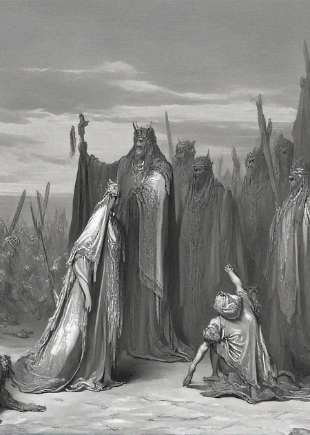 Иллюстрации Гюстава Доре отличаются динамичностью, драматизмом и детализацией. Он мастерски использовал светотень для создания глубины и эмоциональной напряженности. Его работы характеризуются сложными композициями, обилием деталей и фирменной штриховкой, придающей текстуру и объем.
