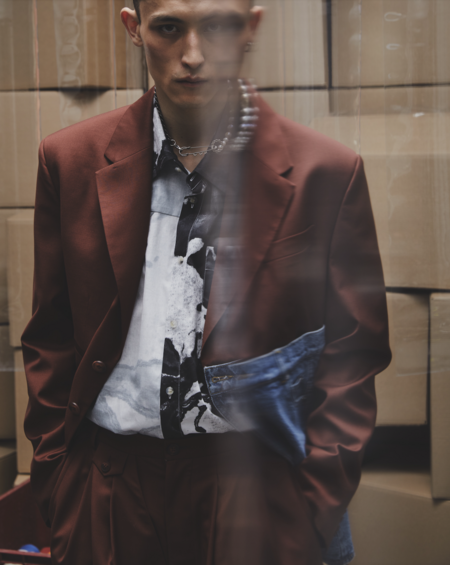 In the «Impulse» collection, the brand reflects on toxicity, a phenomenon that has become a permanent point in the discussion of the social agenda. The collection reflects direct associations with it: experimental etchings of jeans, like burnt holes on a hoodie, patterns with «poisonous» stains. The signature technique of deconstruction is used in the cut of completely new items of the brand: bombers with 4 sleeves, coats with a «zipper» on the waist and a removable lower half, and jackets with raw edges and with no buttons on the sleeves.