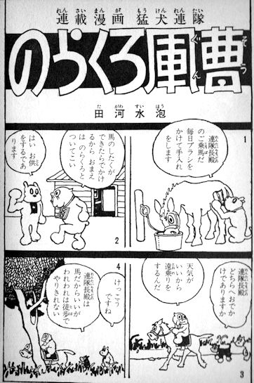 Хотя «Норакуро» Тагавы Суйхо изначально ориентировался на детскую и подростковую аудиторию, его сатирический подход и темы военной службы привлекли также взрослую аудиторию. Манга рассказывала о псе-солдате Норакуро, который сталкивался с разными ситуациями в армии животных.