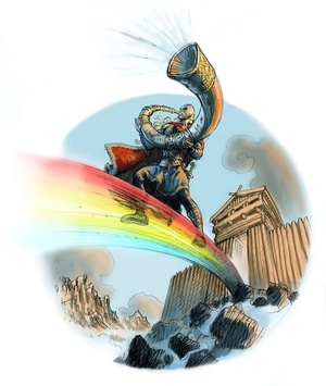 Необходимо отметить о наличии интуитивных догадок о сенсорных оболочках букв в германо-скандинавской мифологии о Биврёсте. Кинокомпания «Marvel» очень точно и ярко передала данный гремящий цветотоновый поток в объёмной проекции.
