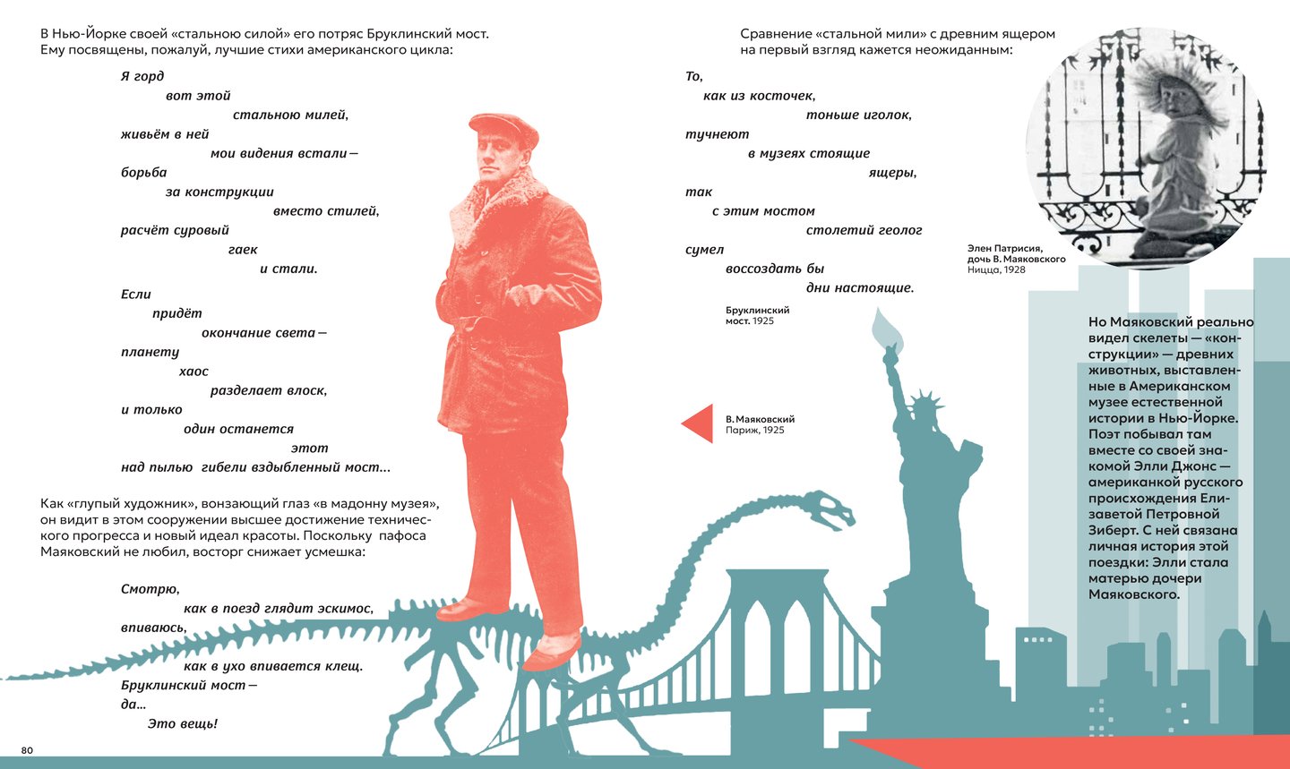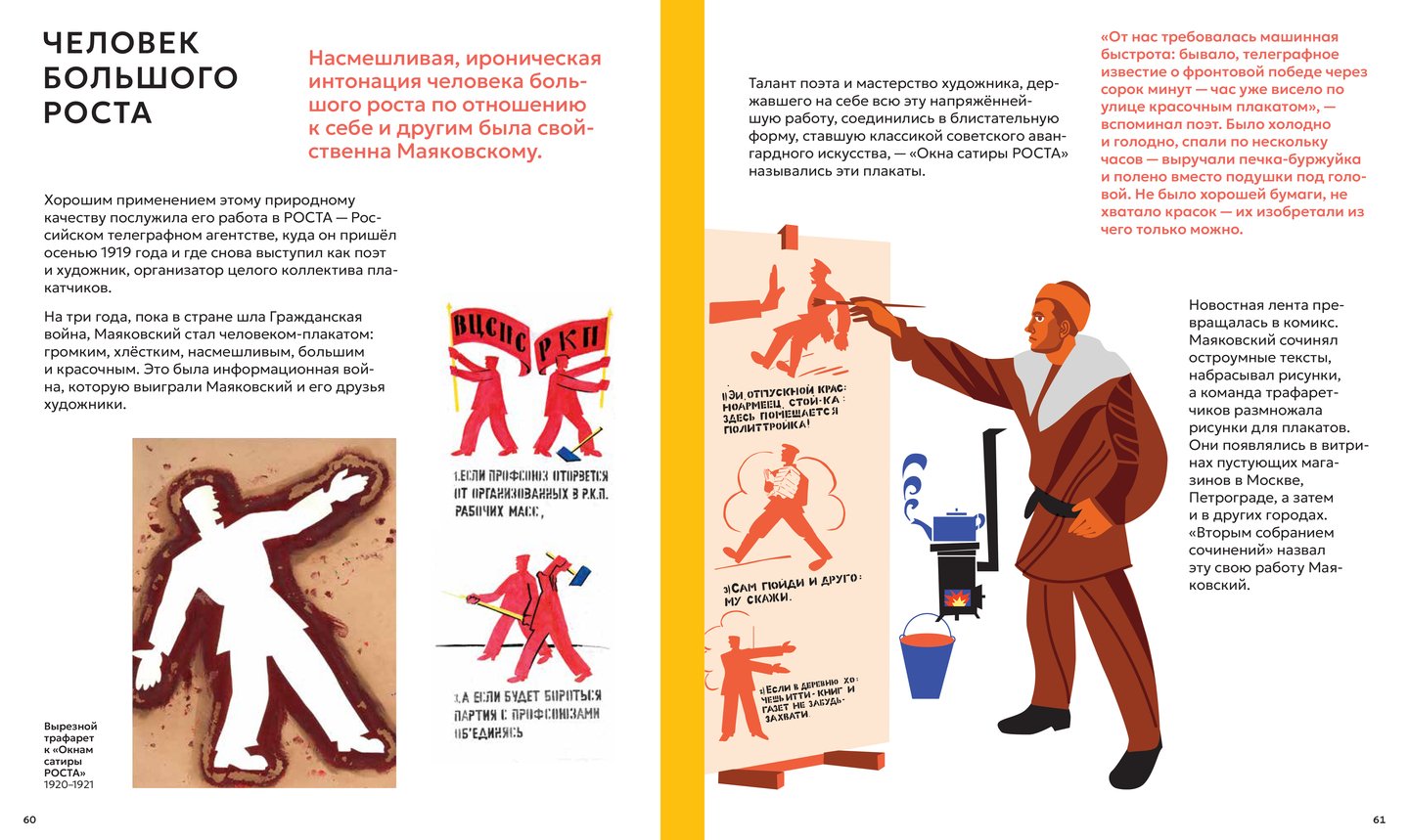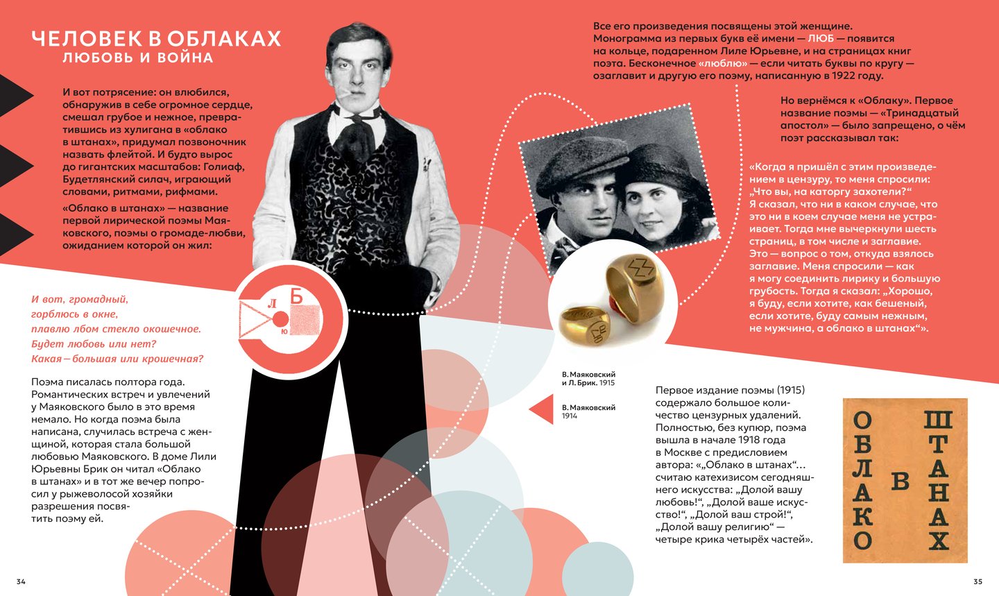 Эта книга рассказывает об одном из самых ярких поэтов XX века — Владимире Маяковском. Впрочем, он был не только поэтом, но и художником, участвовал в авангардном движении кубофутуристов, сотрудничал с основоположниками конструктивизма. А ещё Маяковский осознанно строил свой образ и свою судьбу, не отделяя её от судьбы страны, переживая вместе с ней все сложности и противоречия переломной эпохи, полагая, что работа поэта может переустроить мир, сделать его счастливым.