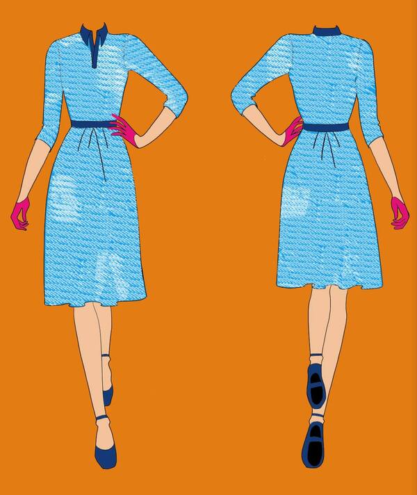 Платье из плотной джерси, рукав реглан, шлица сзади, потайная молния, аккуратная, едва заметная вышивка лого на рукаве сзади у шеи. Возможен вариант с поясом (пряжка обтянута той же контрастной тканью) Туфли Мэри Джейн