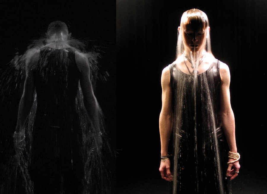 В видеоработах «Чаша слез» и «Покорность» вода выступает метафорой трансформации, переходом между двумя мирами: реальным и ирреальным, — а большую роль играют отражения, символизирующие мир небытия.