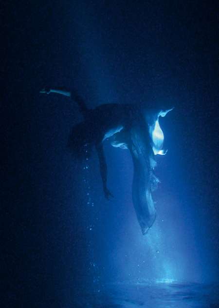 «Они проходят невидимый порог в виде стены из воды, которая настолько чиста и прозрачна, что вы не можете ее увидеть. А затем они фактически выходят в, казалось бы, наше пространство, и в этот момент они трансформируются в высококачественное, высоко детализированное полноцветное изображение», — Билл Виола.