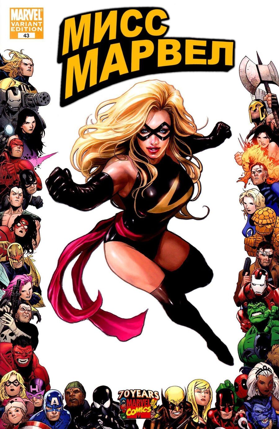 И наконец, Мисс Марвел от издательства Marvel Comics — как олицетворение современной женщины в комиксах. Особенностью этого героя, что она имеет четыре разных героя, выходивших в разные время: Кэрол Дэнверс, Шэрон Вентура, Карла Софен и Камала Хан.