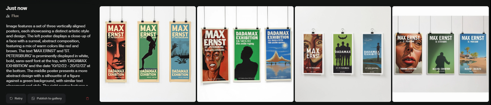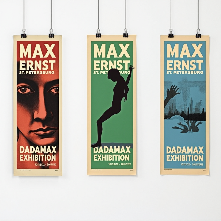 Серия плакатов для выставки, созданные с помощью ИИ / промпт для плакатов.