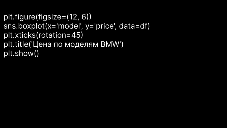 Визуализация подтверждает: самые высокие средние цены — у моделей X7 и 8 Series. Это может быть полезно при сегментации клиентов по платежеспособности.