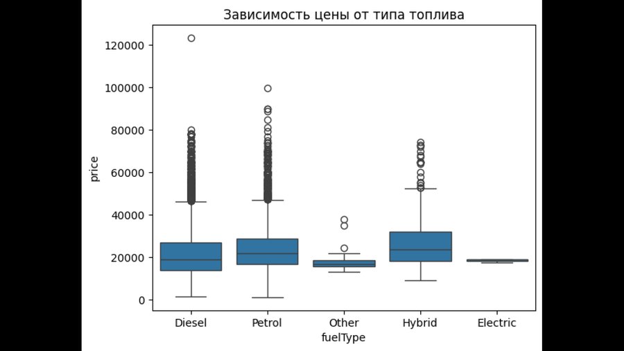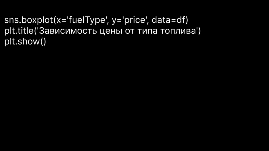 2. Боксплот (для сравнения цен между различными типами топлива и моделями, подчеркивая медианные значения и разброс цен).