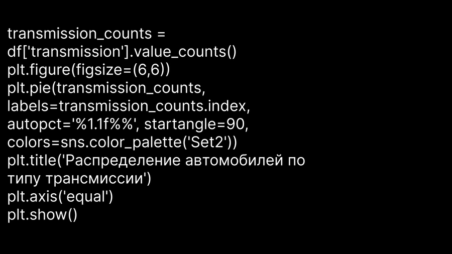 1. Круговая диаграмма (для наглядного демонстрирования распределения трансмиссий).