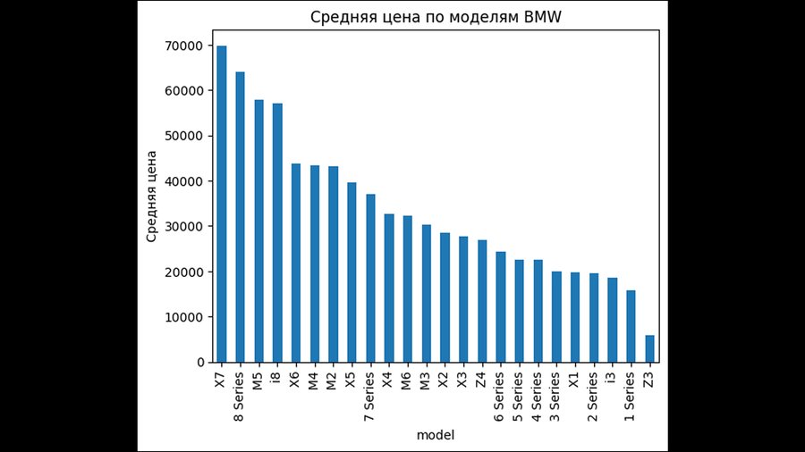 3. Столбчатая диаграмма (для отображения средней цены по моделям, что помогает выявить тренды и предпочтения среди потребителей).