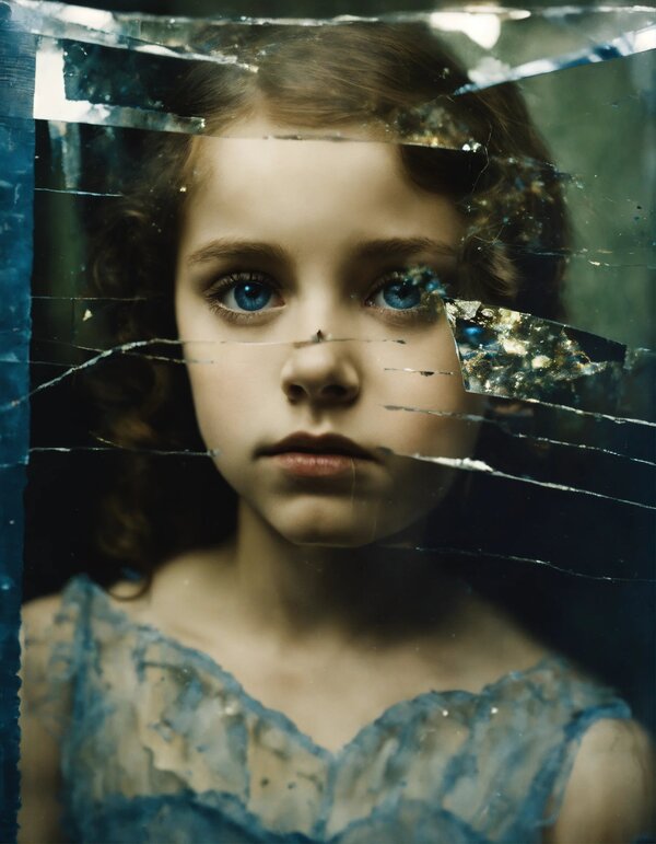Обложка создана с помощью AI — https://lexica.art/. Именно так нейросеть увидела образ Сары Кру. Promt: Sara Crewe Little Princess, Double Exposure photo, featuring eye, shattered mirror effect, broken mirror, sharp mirror edges, Ephemeral Shadows, Motion — Infused Mystique, in the style of haunting allure, Robert Frank.