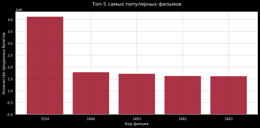 Фильм с кодом 1554 стал абсолютным лидером, продав более 4 миллионов билетов, при этом пять самых популярных фильмов обеспечили свыше 50% от общего количества проданных билетов, а разрыв между первым и вторым местом составил почти 2,3 миллиона билетов, что подчеркивает значительное превосходство лидера.