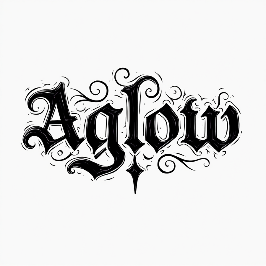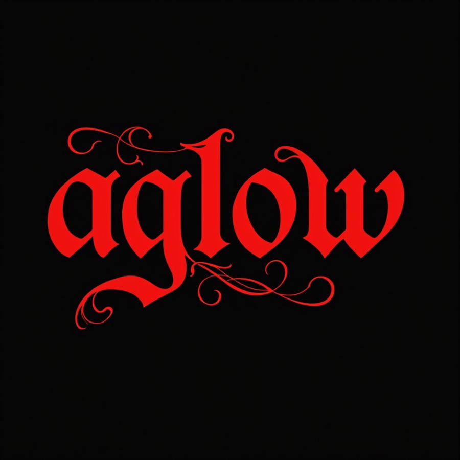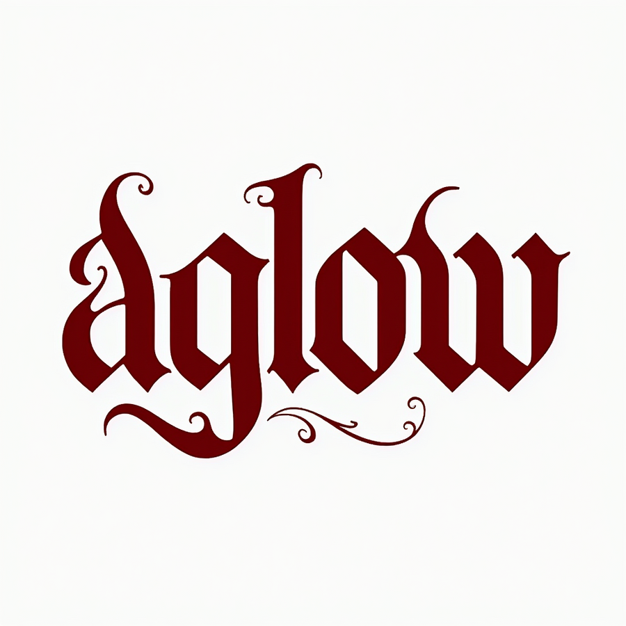 prompt: gothic text «aglow», high contrast, clean and bold lines, isolated on background. High resolution --sref