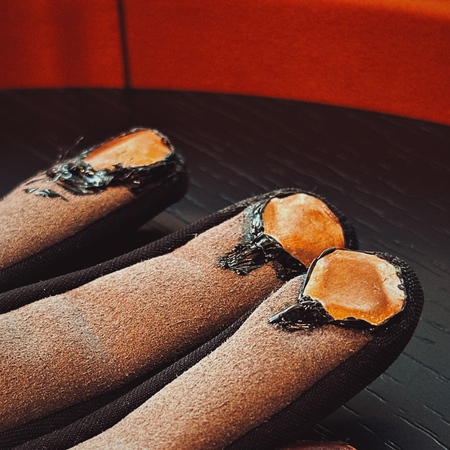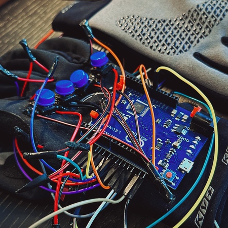 Сэмплы воспроизводятся через патч Max/MSP нажатием кнопок на тыльной стороне ладони, а количество применяемого эффекта регулируется зажатием контактов на кончиках пальцев и поворотом руки по или против часовой стрелки.