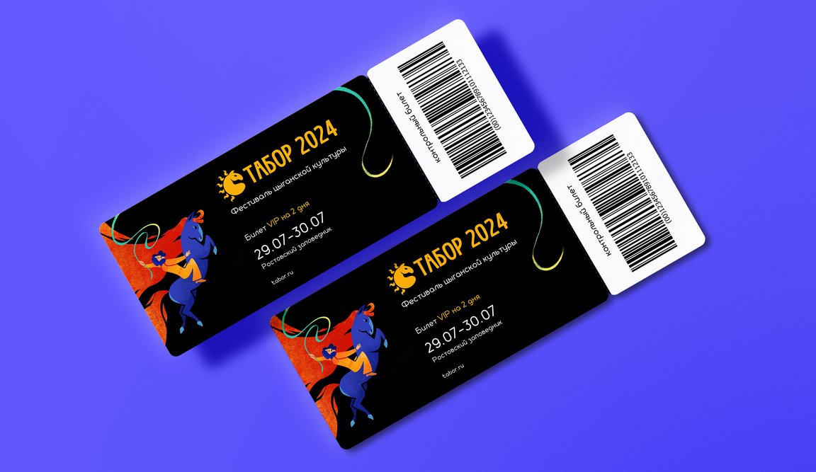 Prompt: Tickets with illustration for the Festival of Roma culture «Tabor».