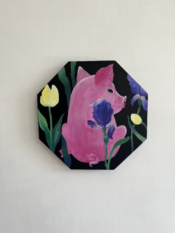«Влюбленность» ДВП, акрил, 7272 см, 2023 год «Свинство» Холст, акрил, 81120 см, 2023 год «Свинство» Холст, акрил, 31 см диаметр, 2023 год (прикрепляю доп работы из серии)