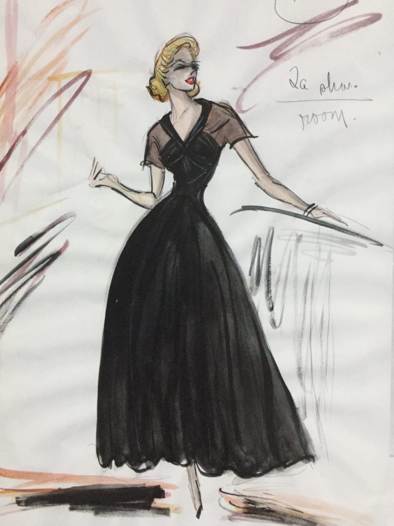 «По задумке продюсеров 20th Century, музыкальный номер Diamonds Are a Girl’s Best Friend должен был войти в историю кино как самый яркий и откровенный. Предполагалось, что Мэрилин споет эту песню практически обнаженной,… Я придумал усыпанный бриллиантами полупрозрачный костюм с открытой спиной. Но прямо накануне съемок этого номера вышел календарь с голой Мэрилин Монро… Мне позвонили и сказали все срочно переделать. Так что я пошел от обратного и создал длинное розовое платье с большим бантом».
