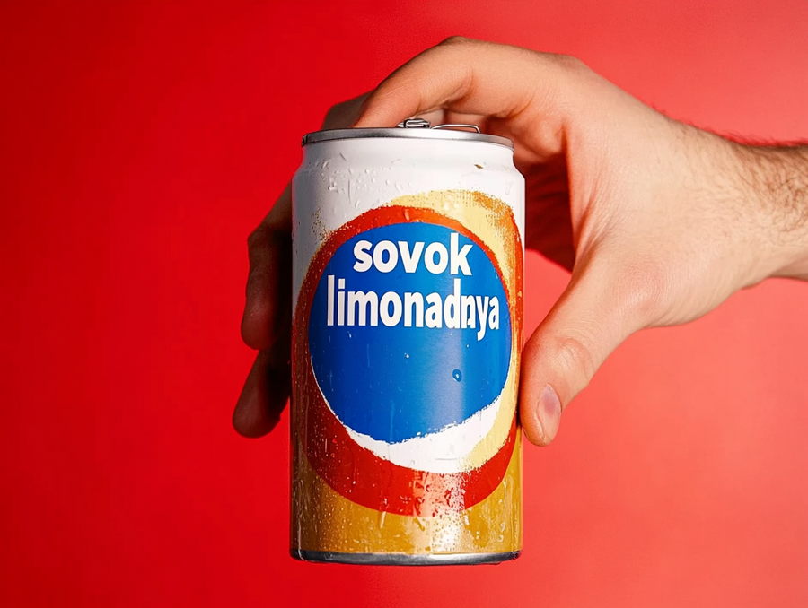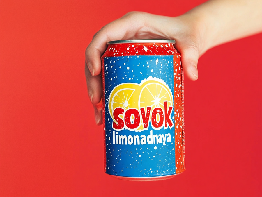 holding can lemonade with soviet package «sovok limonadnaya» in soviet style suprematism. Red blue yellow colors. Red background --ar 4:3 --style raw --stylize 0 --v 6.1 https://s.mj.run/WBwNqZqopgc