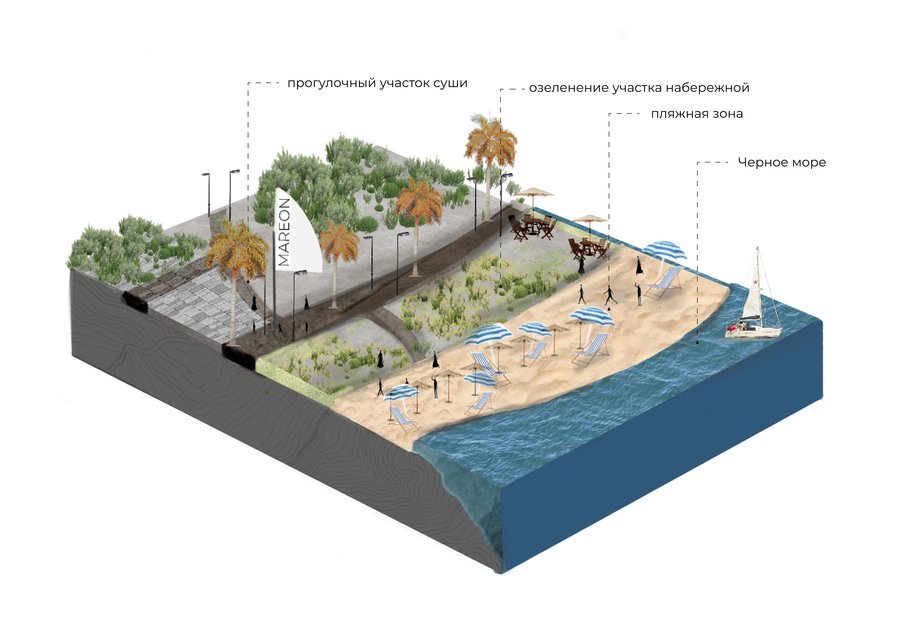 Планируемый результат: выбор ландшафтных решений, интеграция функциональных зон, зонирование территорий, проектирование зданий, павильонов, пирсов, набережной, прогулочных маршрутов.