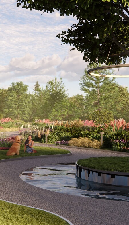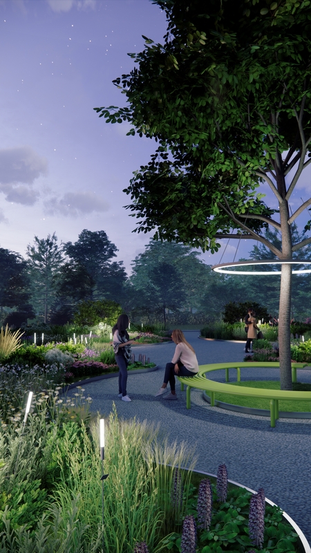 В этом саду каждый ненадолго сможет стать странником, почувствовать течение времени, прогуливаясь по изогнутым, закольцованным маршрутам, открыть для себя новые мысли, задерживаясь на каждой остановке, «контрольной точке» сада, наделенной определенной атмосферой.