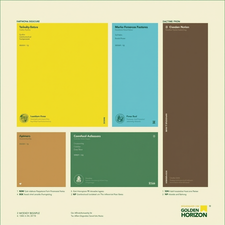 design a signature palette and font selection for Golden Horizon Housewares that conveys strength, authority and authoritativeness. Accentuate the industrial strength with a limited colour palette of dirty yellow, neon blue, brown and green. Choose a bold, simple and easy-to-read typeface that reflects the brand’s commitment to durability and functionality. The typography should suggest solidity. The choice of colour and font should harmonise, creating an image of uncompromising quality and control