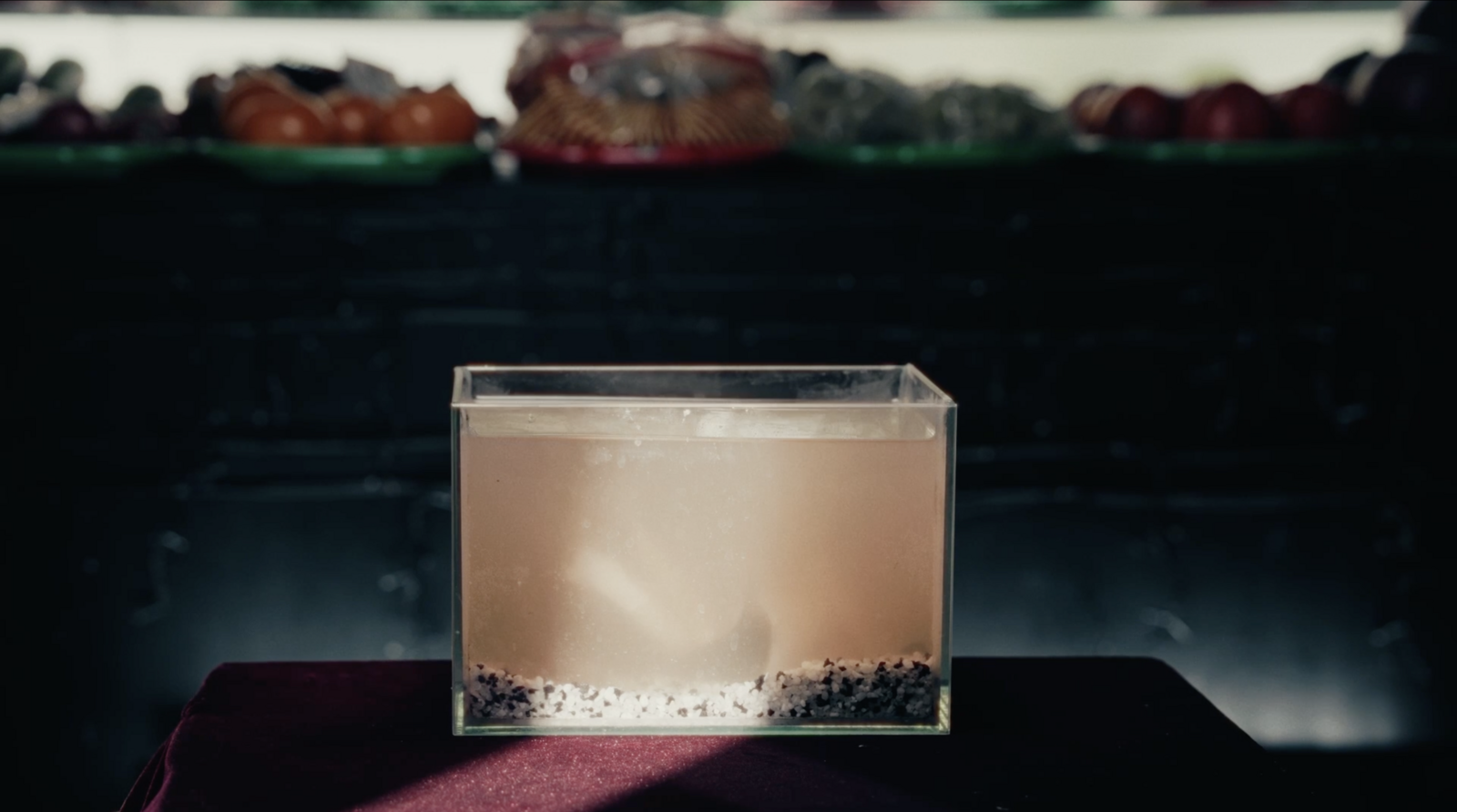 Аквариумы не являются часто продаваемым товаром, поэтому пребывают в запустении в самом дальнем углу магазина. Каменное дно отражает безразличие и городскую среду, таким образом аквариум становится почти что манифестом современной жизни жителей Желтого Неба