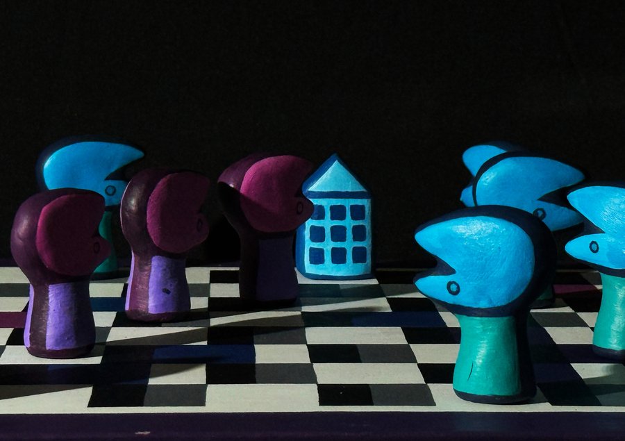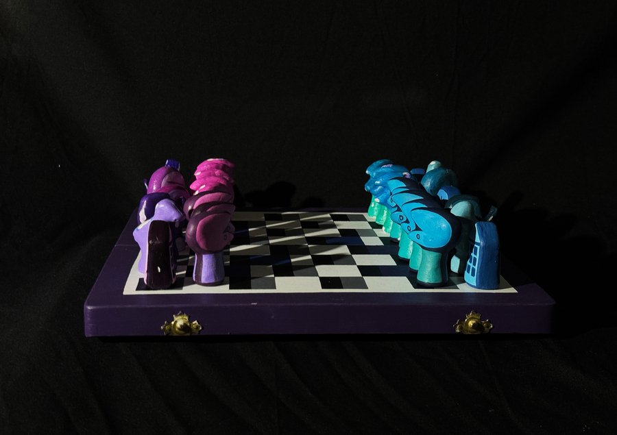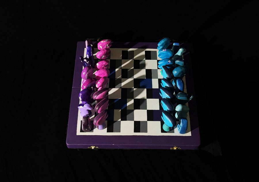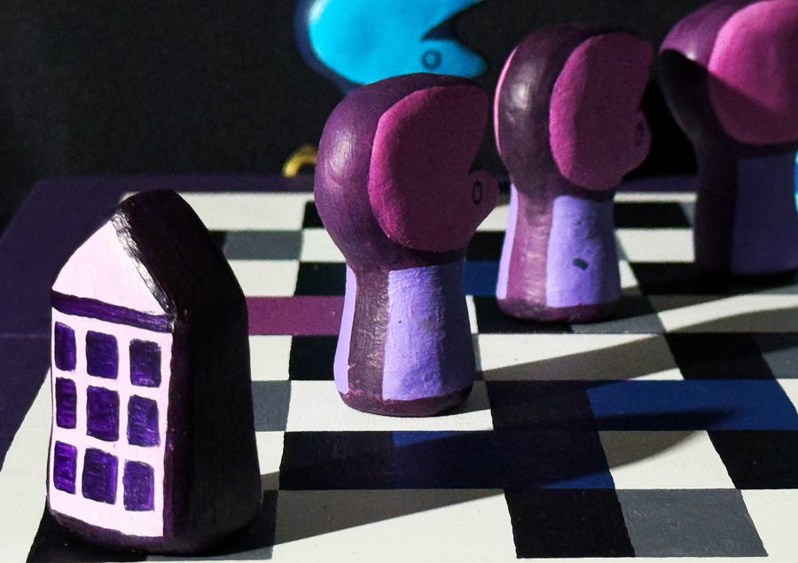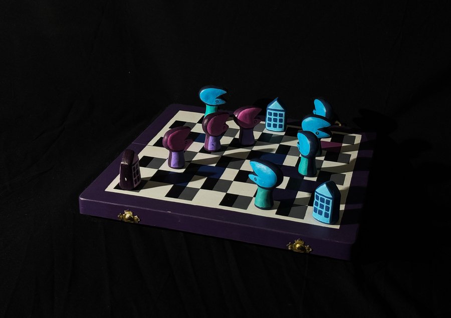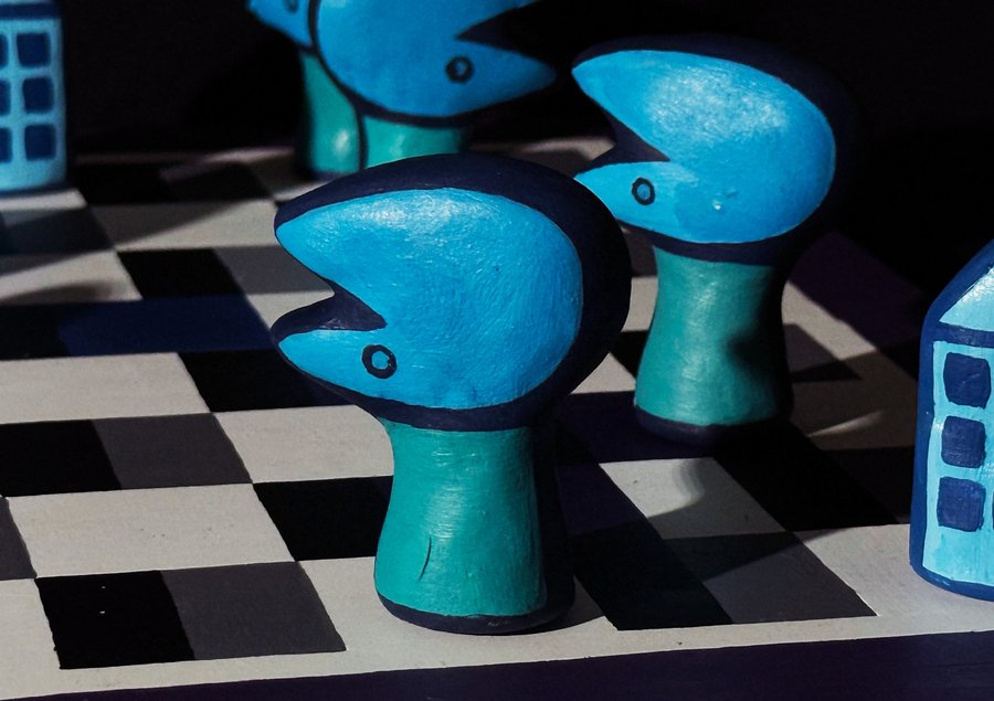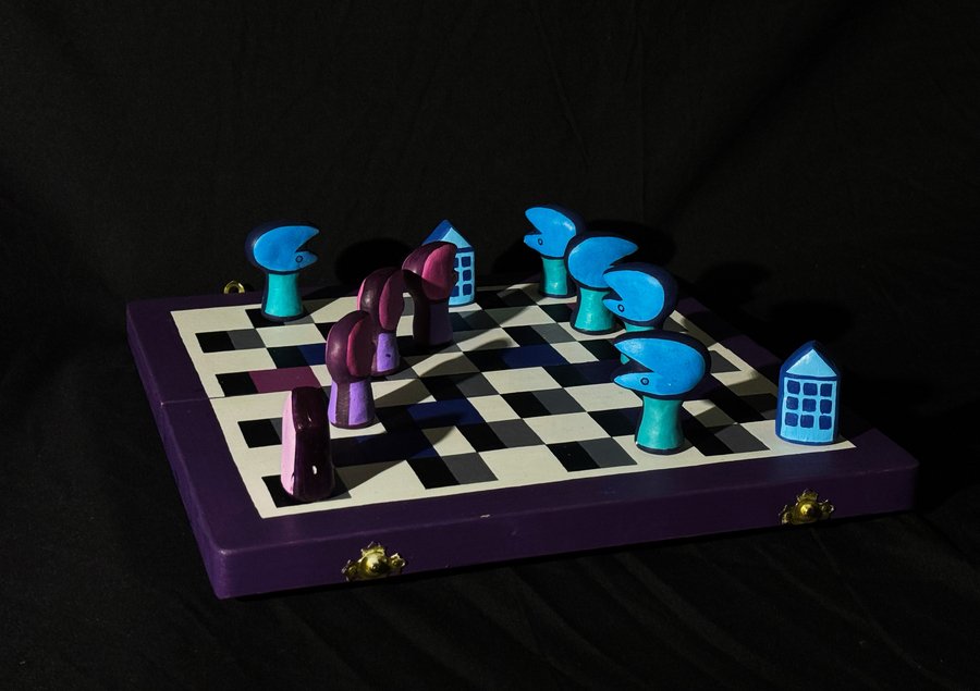 Дизайн шахматной доски и фигур основан на картинах художника Пауля Клее и стилизован для удобного пользования игрой.