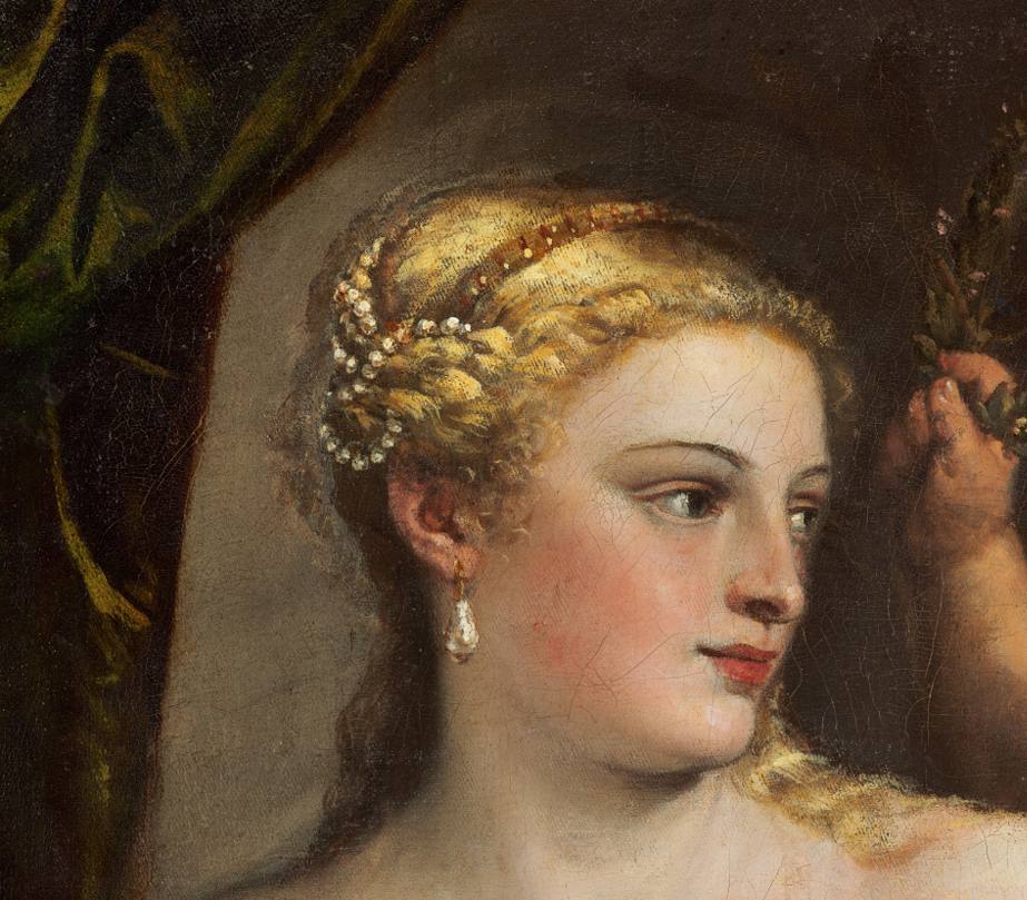 Отличительной особенностью Тициана была его работа с холстом. Он наносил по 30–40 лессировок большим пальцем или ладонью. Это придавало сияние и более мягко изображало фигуру.