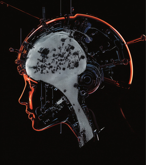 mj: Create an advertising creative for a high-tech information processing center from the future. The startup aims to produce high-tech helmets to cleanse the brain of negative information. The company name is Pure Mind.