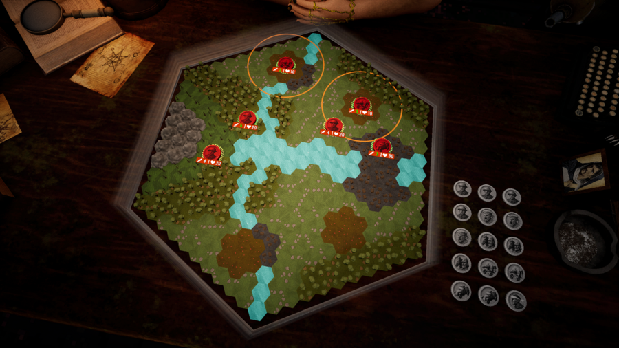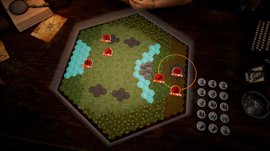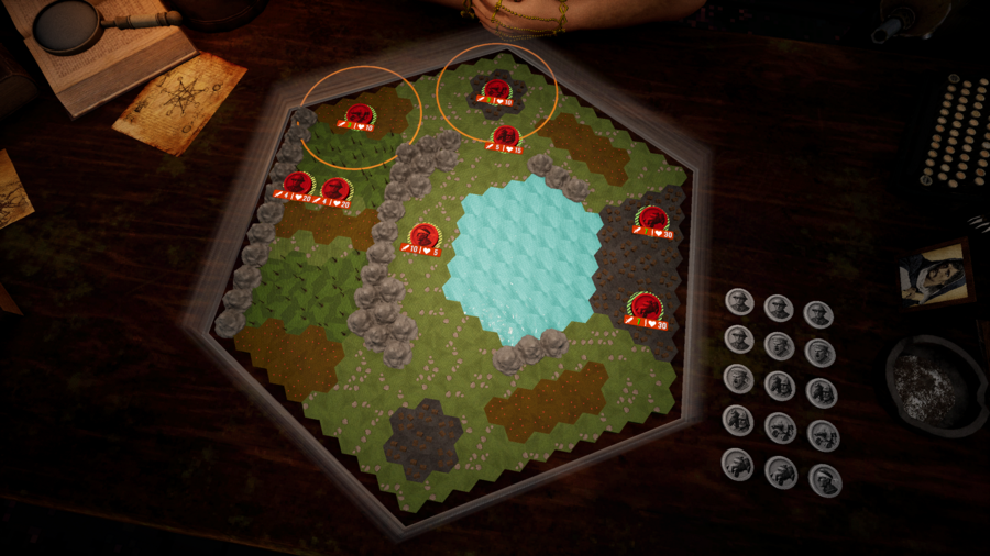 Магические барьеры вокруг игрового поля наносят урон всем врезающимся в них шашкам — отбрасывай вражеские шашки на барьеры, чтобы нанести дополнительный урон.
