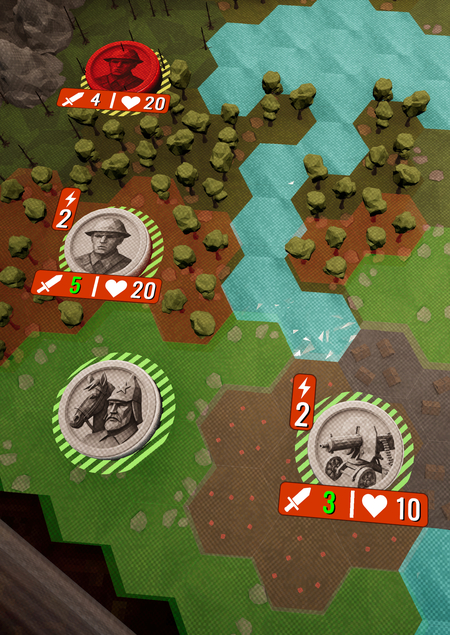 Матросы без штрафов пересекают реки, кавалерия не получает урона от барьеров, а пулемёты наносят урон всем вражеским фигурам, перемещающимся в некотором радиусе от них.