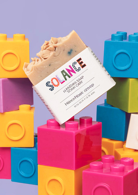 Стиль переосмысляется в концепции конструктора, геометрических форм, собирающихся в единую композицию, как метафоры того, как создаётся кастомное мыло. Иллюстративность и стиль коллажа отражают индивидуальный подход и ручное создание продукции.