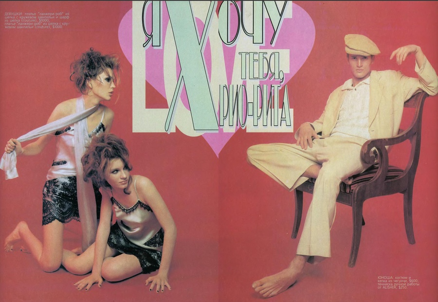 Съемки российских дизайнеров часто были простым способом сделать фотографии, необходимые для наполнения журнала. В то время не было шоу-румов, поэтому стилисты брали вещи из магазинов. Если вещь была испорчена в процессе съемки, то журнал обязывался оплатить ее. Это было постоянной головной болью, потому что на съемках вещи, как известно, часто портятся. Каждая съемка заканчивалась разборками с магазином, и стилисты, которые этим занимались, были такими бойцами, прошедшими через огонь и медные трубы общения с магазинами.