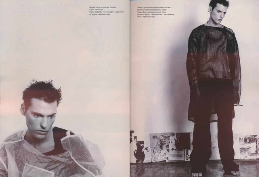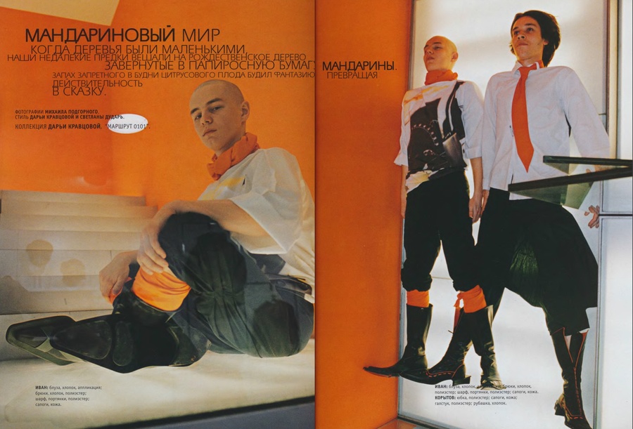 Анзор: Мода меня всегда интересовала, но скорее как часть современной культуры — я ее воспринимал, опять-таки, через призму The Face с Александром Маккуином на обложке. «ОМ» был разбит на разделы по темам культуры, модой я не занимался, и в российской моде тогда ориентировался весьма слабо. Разве что Света Рейтер, которая тогда писала о моде в журнале, водила меня на какие-нибудь мероприятия. Вообще «ОМ» формально был мужской журнал, у нас, помню, был еще раздел про красоту и уход за собой; Игорь Григорьев тогда очень пропагандировал эту тему ухода и усовершенствования себя.