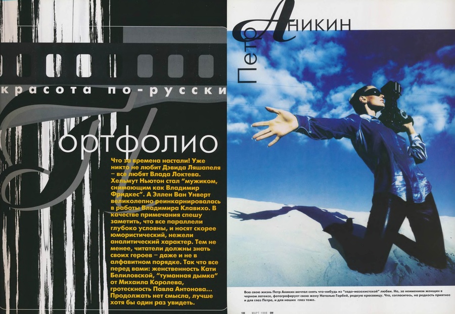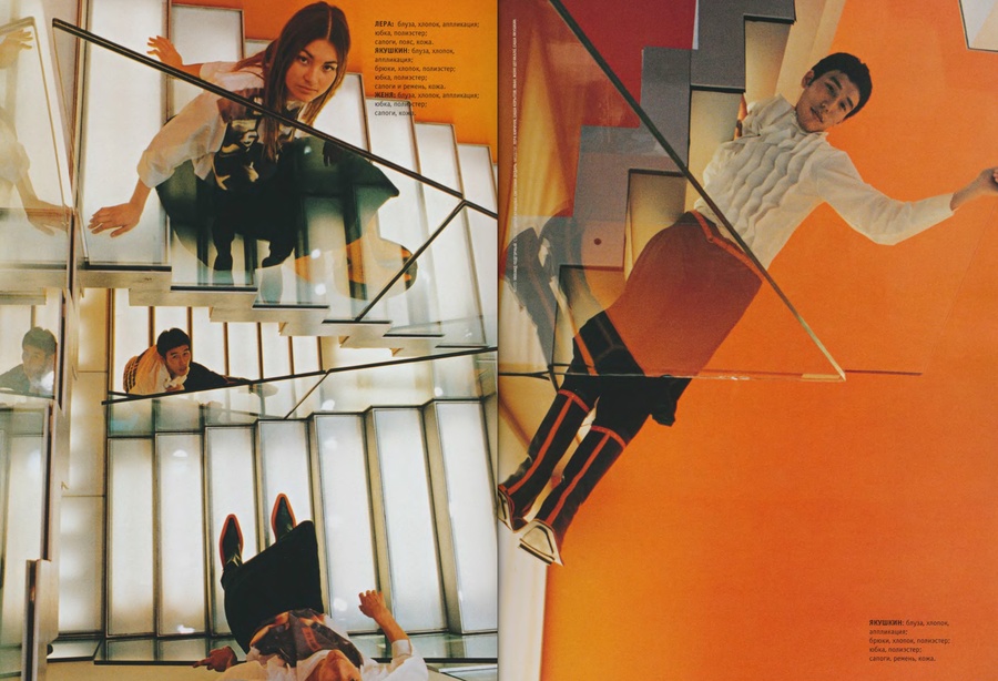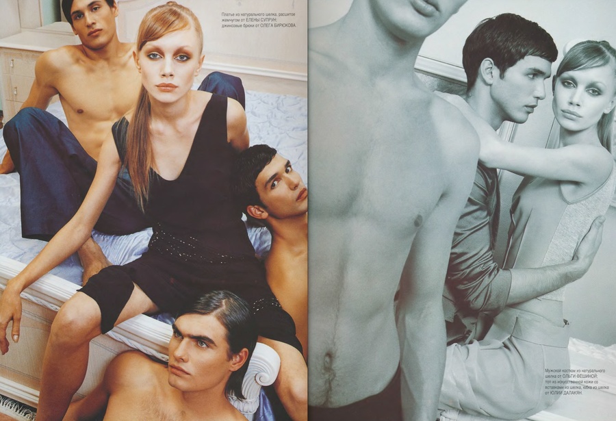 Анзор: За 5-6 лет журнал «ОМ» претерпел значительные изменения визуально и концептуально. Если раньше он был ярким отражением молодежной культуры и современных тенденций, часто делая ставку на вызов и провокацию, то в 2000-е он стал более эстетичным и сдержанным. Мы старались делать съемки со смыслом — тогда уже и фотографы, и стилисты более-менее научились это делать. Мы осознали, что мода — это не просто какой-то отдельный мир, это такой инструмент воздействия и выражения идей, сила которого в том, что люди хотят носить вещи и выглядеть оригинально. В общем, раньше мы в «ОМе» не осознавали значимость рынка моды, но это становилось все более и более ясным. К началу нулевых все такого типа издания, не только у нас, но и в мире, должны были или перестроиться по фэшн-модели или закрыться. Большинство справились с этим, но «ОМ», по объективным причинам, не смог. А я как раз тогда перешел в Harper’s Bazaar.
