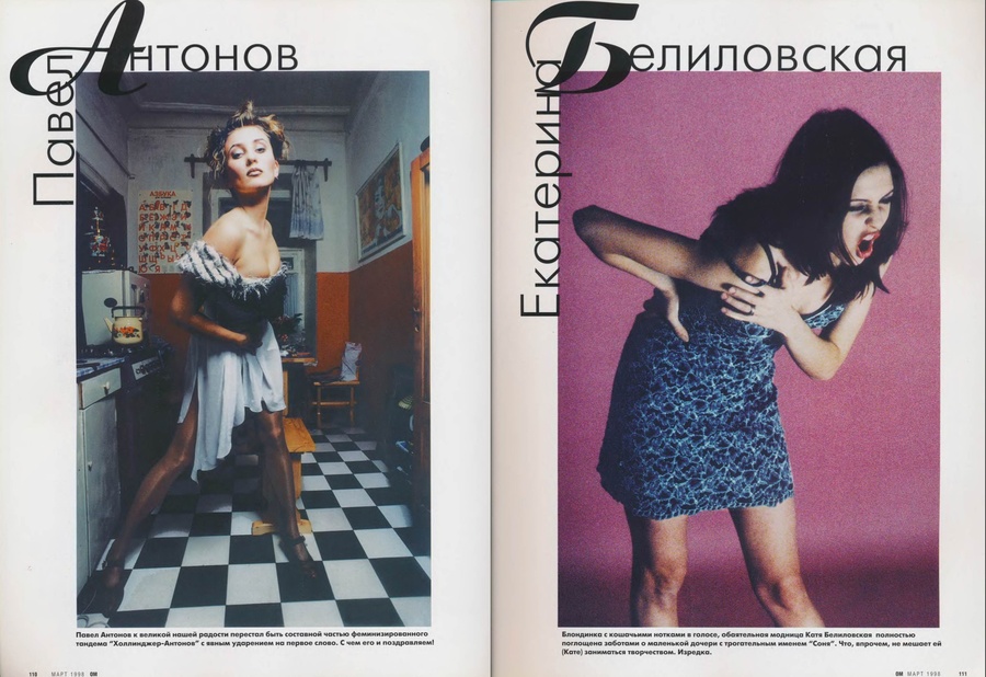«ОМ» тогда был очень тесно связан с шоу-бизнесом; сферы моды, как таковой, по сути еще не существовало. Мода была как бы важная часть современной культуры, и поэтому надо ее делать. То есть ни рынка, ни вещей, ни тем более рекламодателей толком не было. В каждом номере были одна-две съемки или материал о дизайнере; я иногда показываю студентам эти ранние съемки, они сейчас выглядят одновременно и немного комично, и невероятно круто. Это был такой период обучения всех нас, все учились, делая съемки, журналы, просто своими руками.